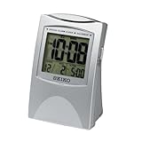 Thanks to an illuminating screen and an alarm with snooze function, the Seiko Bedside Alarm Get Up and Glow Clock keeps your life nice and simple. Built with a convenient, portable design, this sleek silver-tone metallic alarm clock transports easily, so you can stay on top of your schedule wherever you go. The LCD screen features an automatic calendar and alarm setting, which you can adjust on the side of the case. Travel-ready from the get-go, this digital alarm clock comes with two AAA batteries.